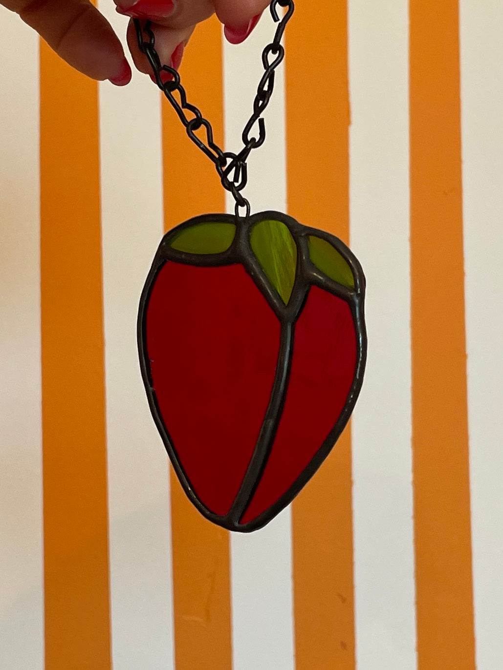Botanic Beetle Stained Glass Hanging | Strawberry