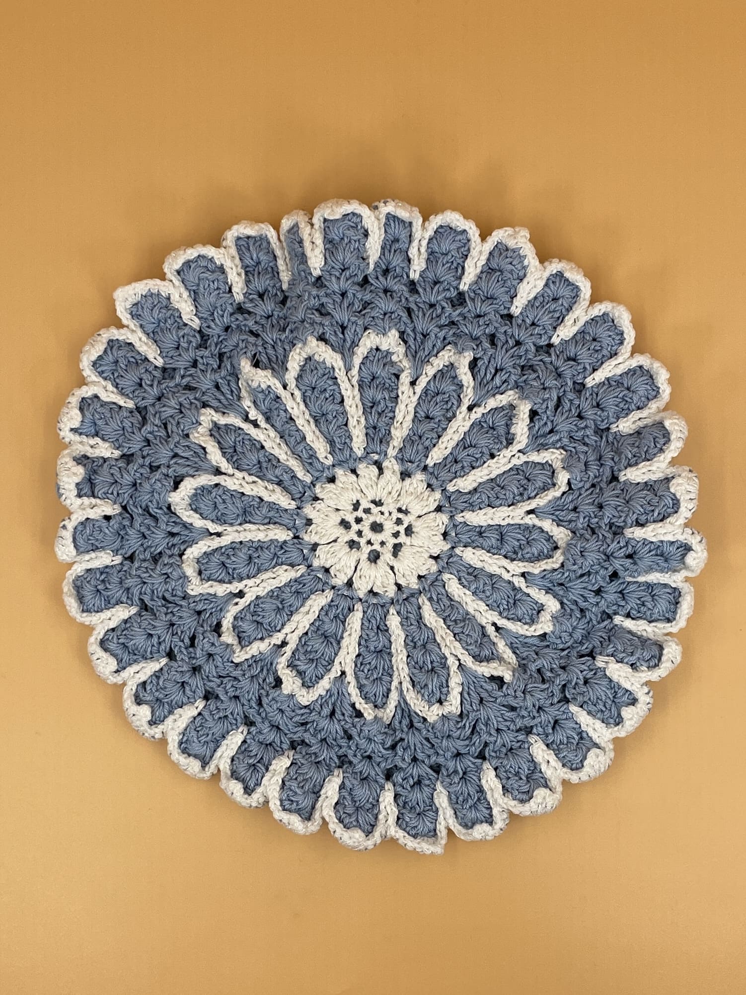 Hand-Made Blue Flower Crochet Pot Rest | Large