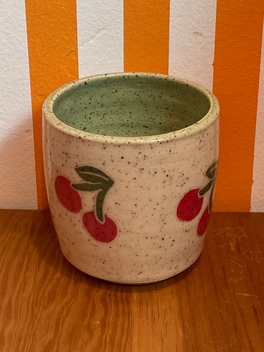 As a longtime chef, she still finds herself inspired by food and enjoys painting it on her pottery.