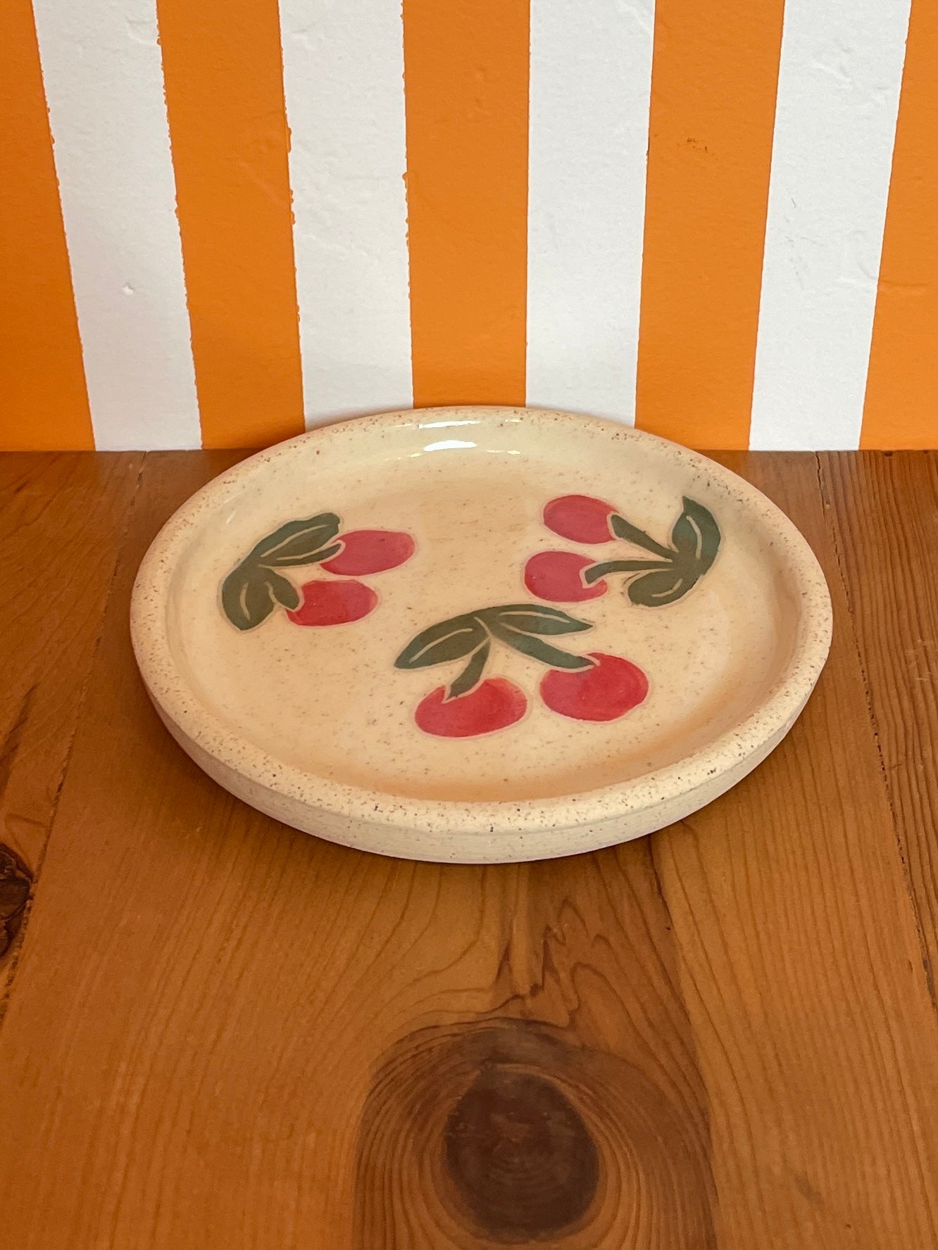 As a longtime chef, she still finds herself inspired by food and enjoys painting it on her pottery.