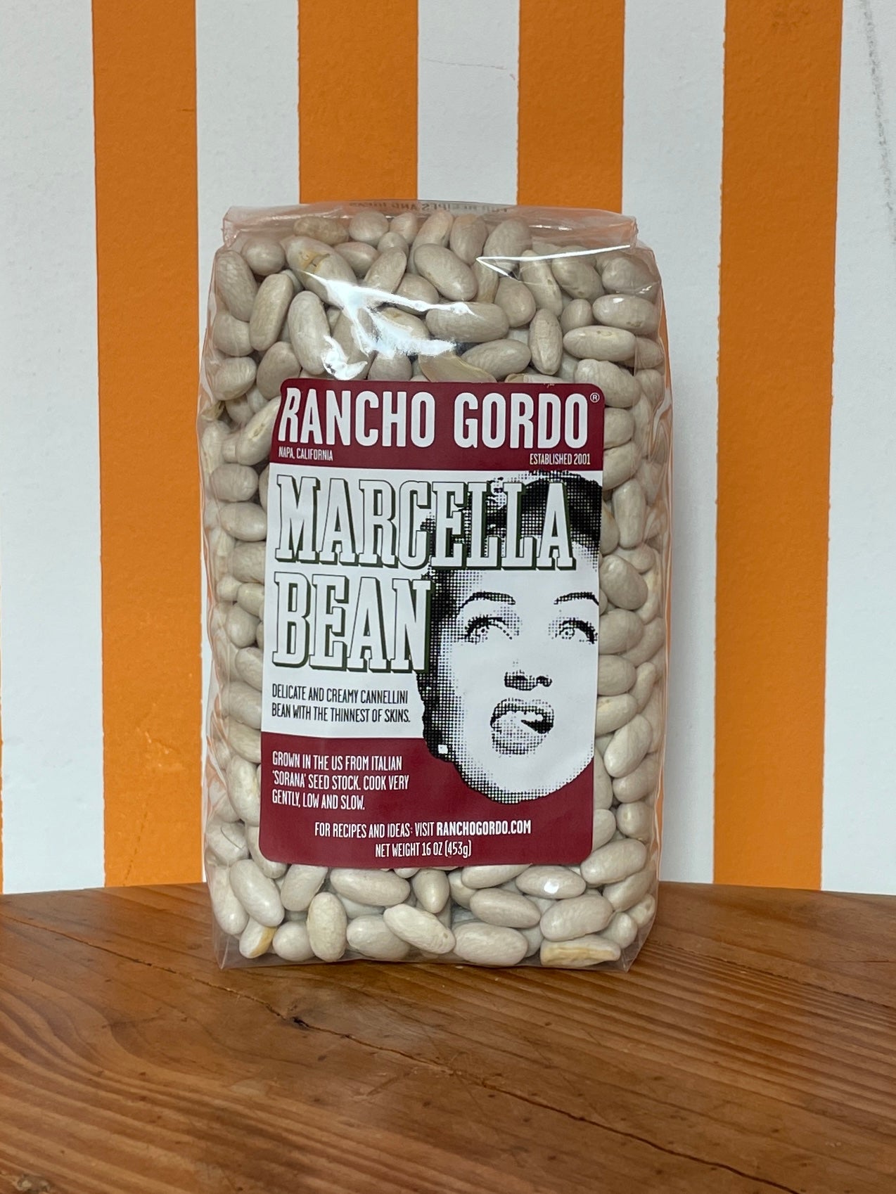 Marcella beans, grown in California from Italian Sorana seedstock, are a special variety of cannellini bean. Known for their incredibly thin skin and indulgently creamy texture when cooked, they elevate any dish. While you can use them as you would any small white bean, their exceptional quality shines in simple preparations.